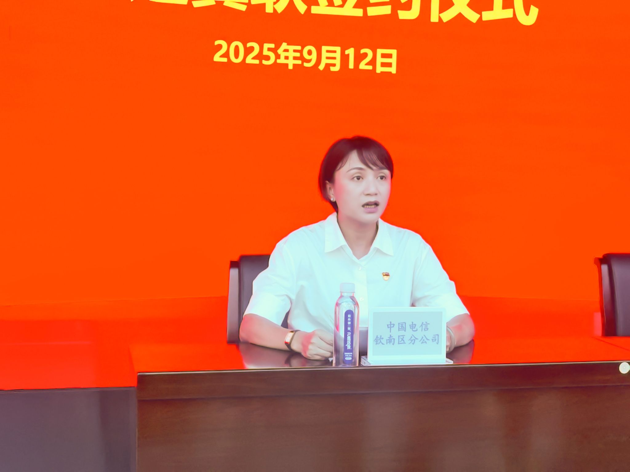 中国电信钦南区分公司党支部书记、总经理陆媛致辞