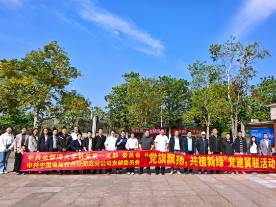 春和景明,植绿当时。3月12日,正值我国植树节,中共北部湾大学机关第一支部委员会与中共中国电信钦州钦南区分公司支部委员会携手,在学校南门共同开展“党旗飘扬 共植新绿”党建翼联主题活动,以实际行动践行生态文明理念,强化党建引领,深化校企共建。