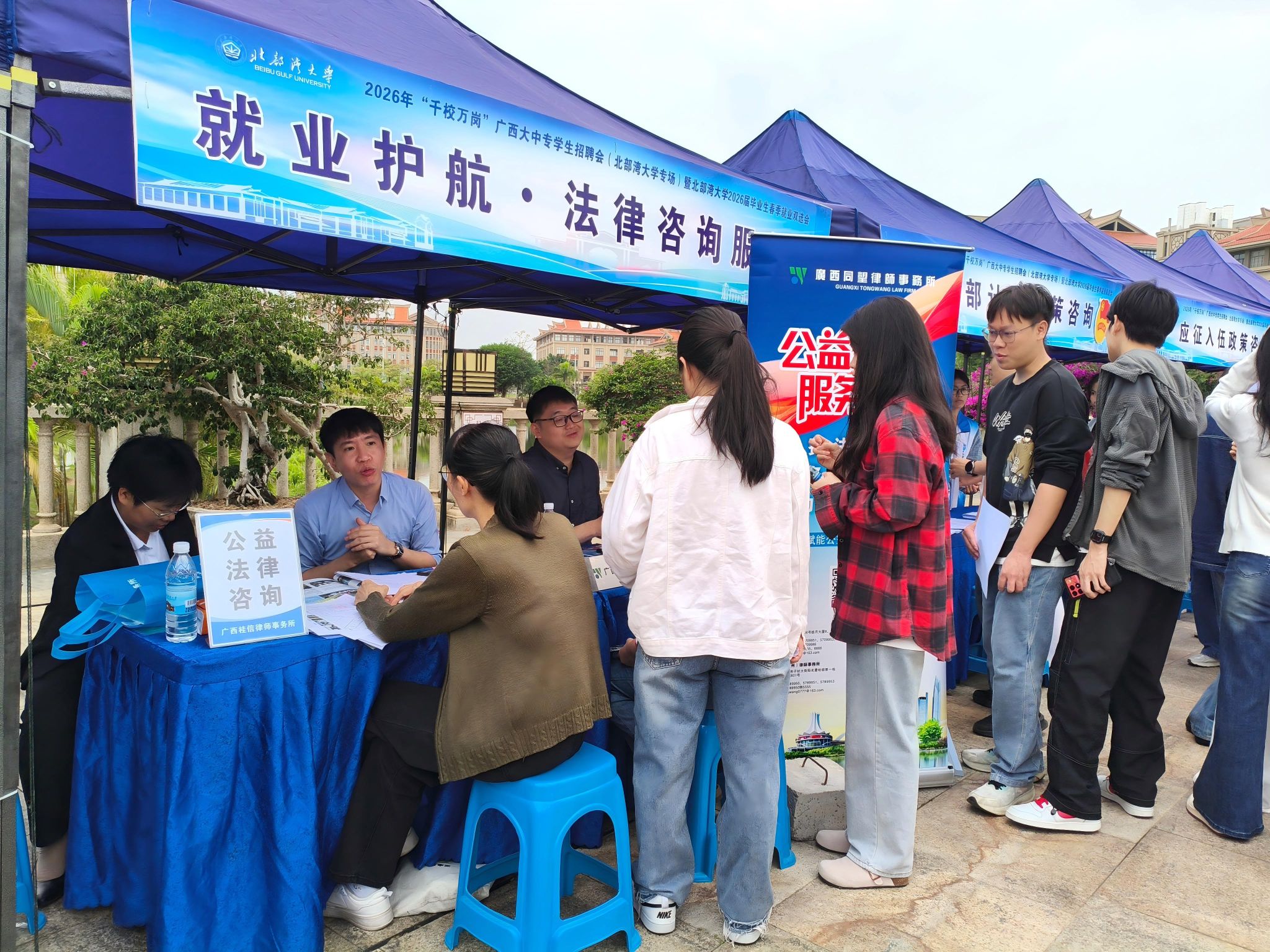 此次法律咨询服务点设在北部湾大学2026届毕业生春季就业双选会现场,精准对接毕业生求职过程中的法律需求,也是党员主动服务、贴近师生的具体实践。
